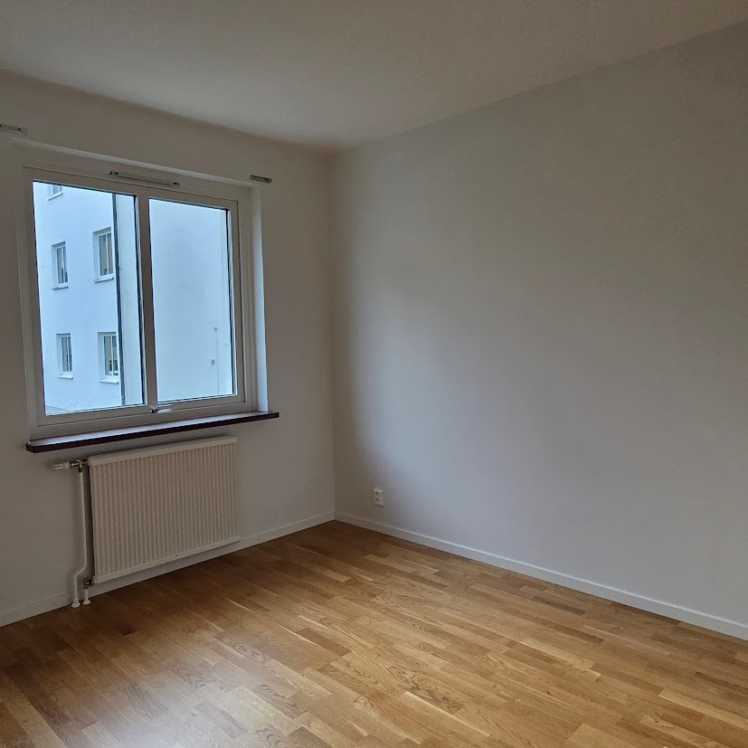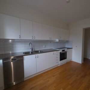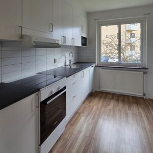 Ljus och fräsch lägenheten med balkong. Köket är utrustat med diskmaskin induktionsspis och micro. Helkaklat badrum med handdukstork och indragna rör och el för tvättmaskin.