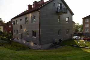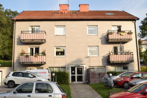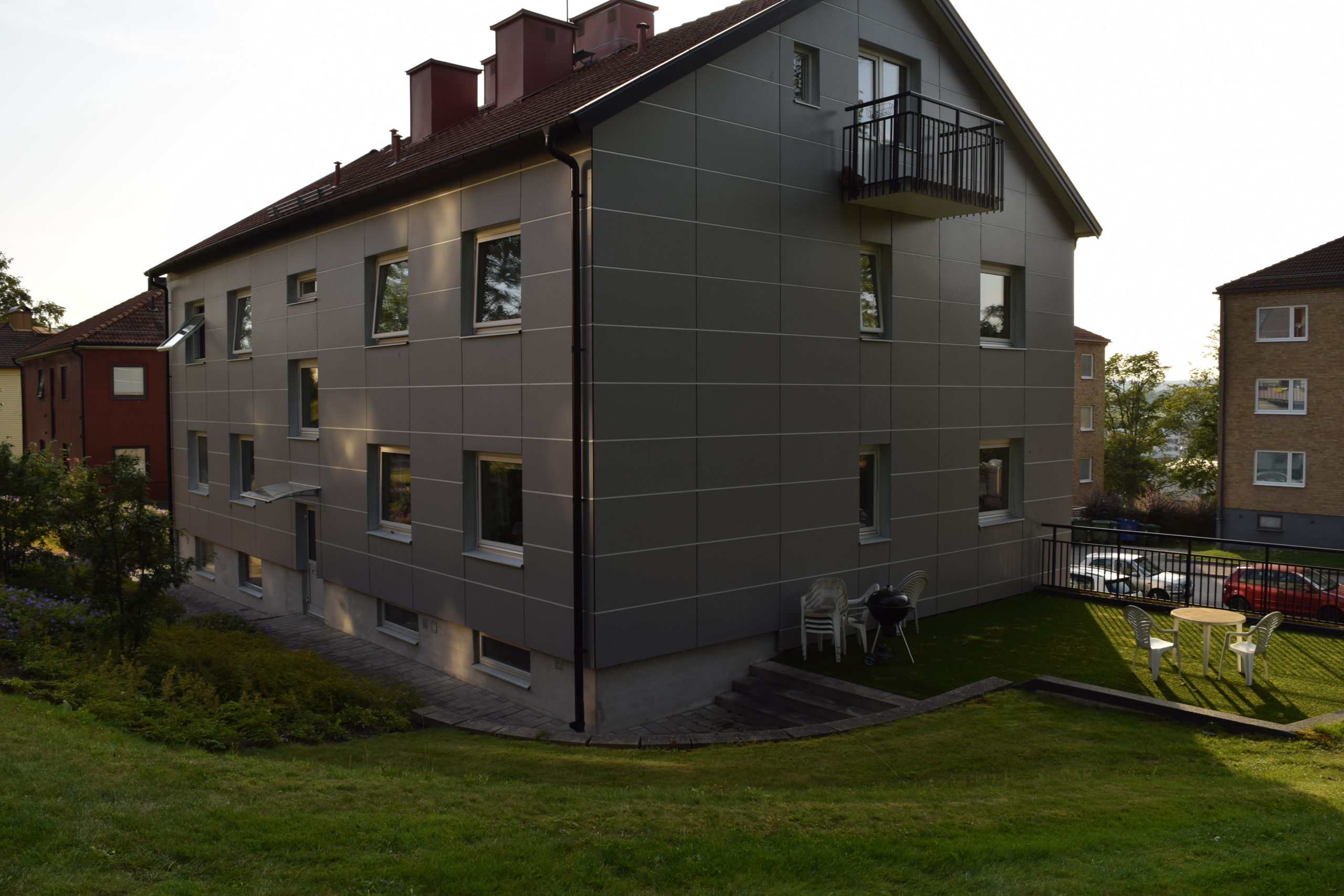 Huset ligger relativt centralt beläget i Ulricehamn med parken Ekhagen som granne. Här får du ett boende med närhet till allt du behöver. Alla lägenheter har balkong och inom kort kommer fiber att installeras. Tvättstuga, förråd och cykelrum finns i källaren. På bottenplan finns en kontorslokal och en lägenhet som är handikappanpassad med egen uteplats. På tomten finns ett begränsat antal p-platser och garage att hyra.