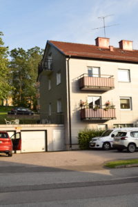 Varje fastighet har ett litet antal garage i direkt anslutning till fastiheterna.